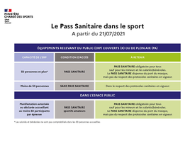 Le Pass sanitaire dans le sport à partir du 21 juillet 2021